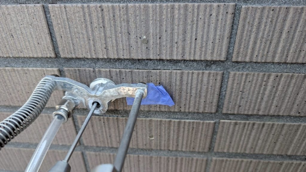 弊社では必要に応じて「Jfp(ジャストフィットピン)工法」を採用しており、従来の補修工法の問題点を独自技術で解決。より確実で高い強度でタイルの浮きを押さえ、振動や騒音が少なく、粉塵も一切発生しません。
